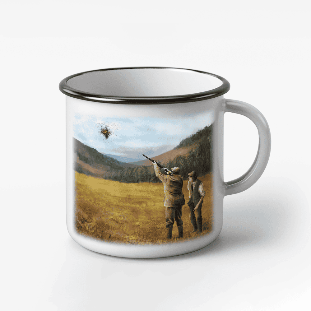 These premium 8oz retro ceramic mugs feature a striking clay pigeon shooting design, hand-drawn by one of our talented local artists. This exclusive artwork makes each mug a perfect gift for shooting enthusiasts.