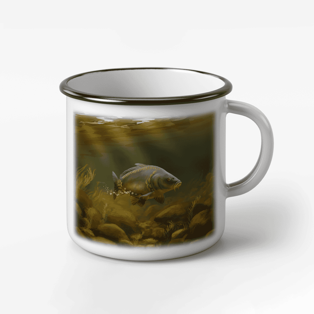 These premium 8oz retro ceramic mugs showcase a beautiful Mirror Carp design, hand-drawn by one of our talented local artists. This exclusive artwork makes each mug a perfect gift for fishing enthusiasts.