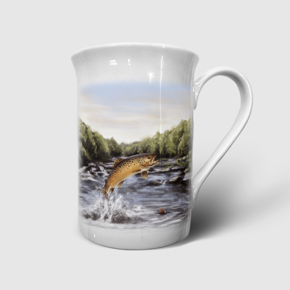 These high-quality bone china mugs showcase a beautifully crafted Brown Trout design created by one of our talented local artists.