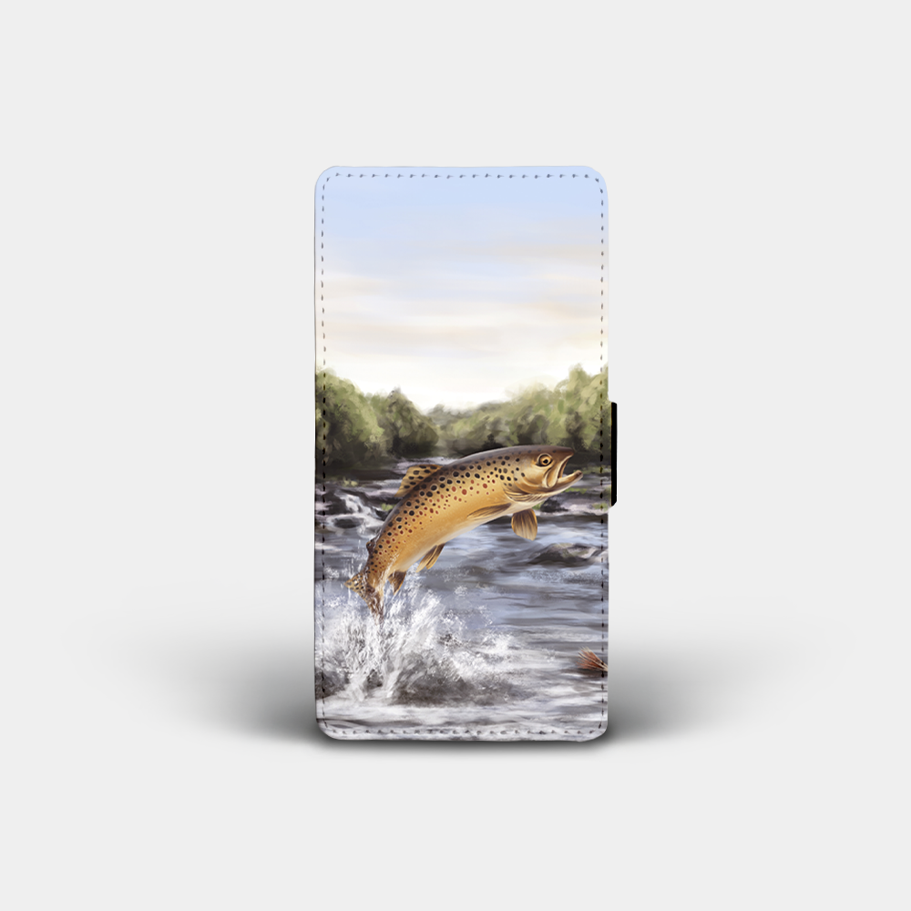 These high quality, PU faux leather phone cases come printed on the front with a stunning brown trout design created by one of our local artists.