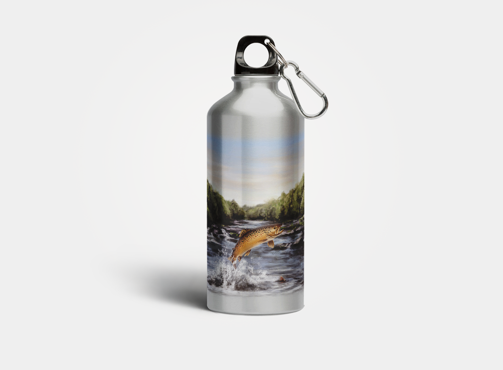 This 600ml bottle features a stunning brown trout design, created by one of our talented local artists. Printed on both sides, the artwork captures the essence of the Scottish Highlands.