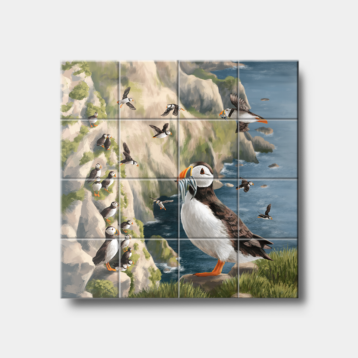Ceramic Tile Mosaic Printed with Puffin Design (Square)