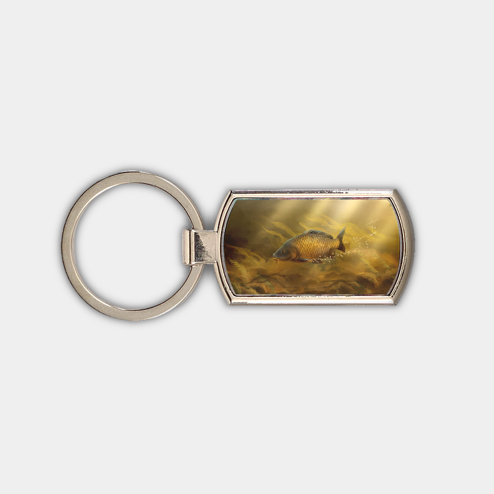 These high-quality, lozenge-shaped metal keyrings feature a beautiful Common Carp design created by one of our talented local artists.