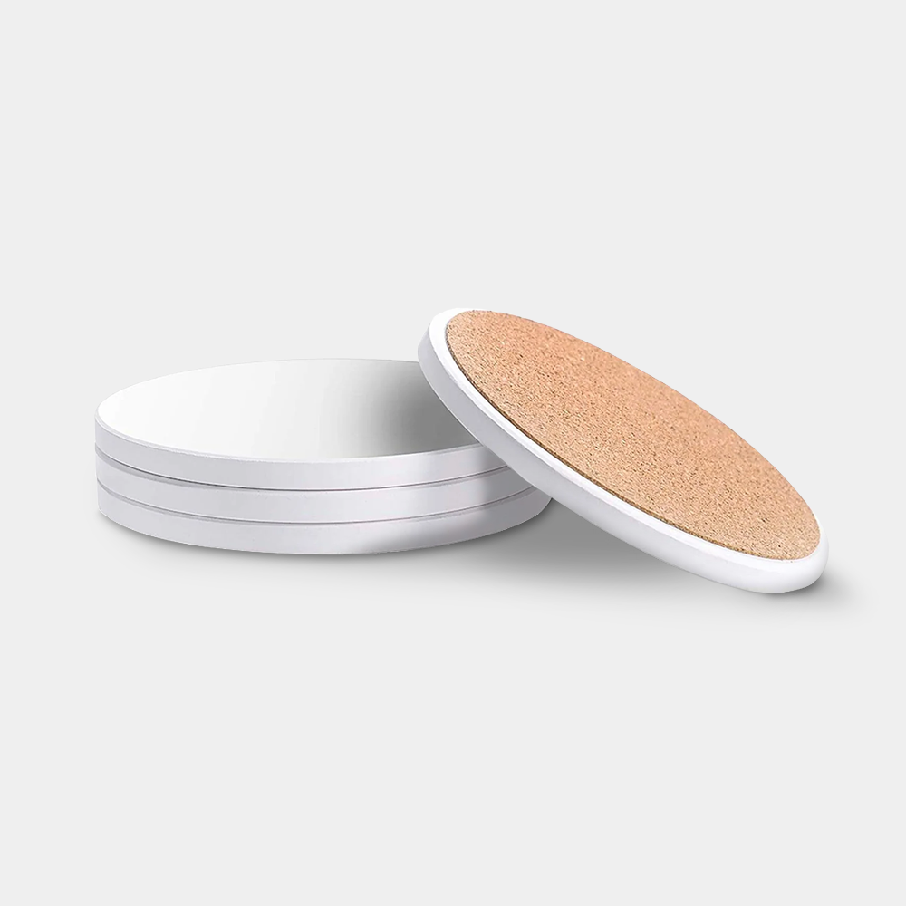 Design your own custom, round ceramic coaster. The coaster features a bright white, high-gloss finish and a durable cork backing, designed to protect your surfaces while showcasing your personalised artwork in stunning detail and vibrant colour.