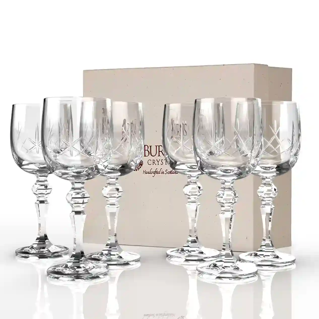 Each goblet is carefully presented in a Burns Crystal presentation box, ready to gift immediately. A sophisticated and thoughtful choice for weddings, anniversaries, or any celebration that deserves a touch of elegance.