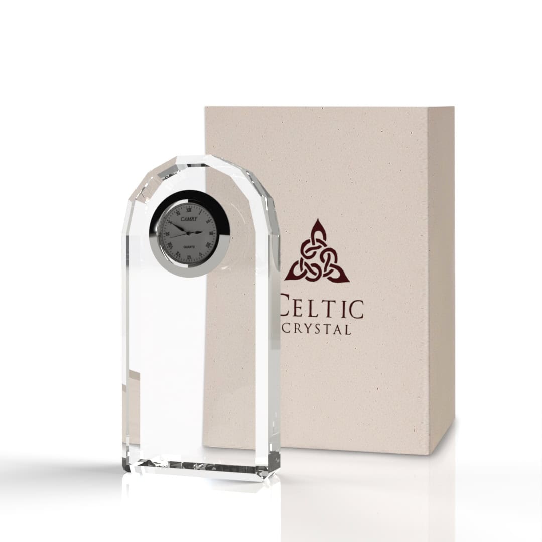 This desk clock is crafted from the finest lead crystal, bringing elegance and sophistication to any wooden desk or workspace. Its sleek design combines functionality with a luxurious decorative touch.
