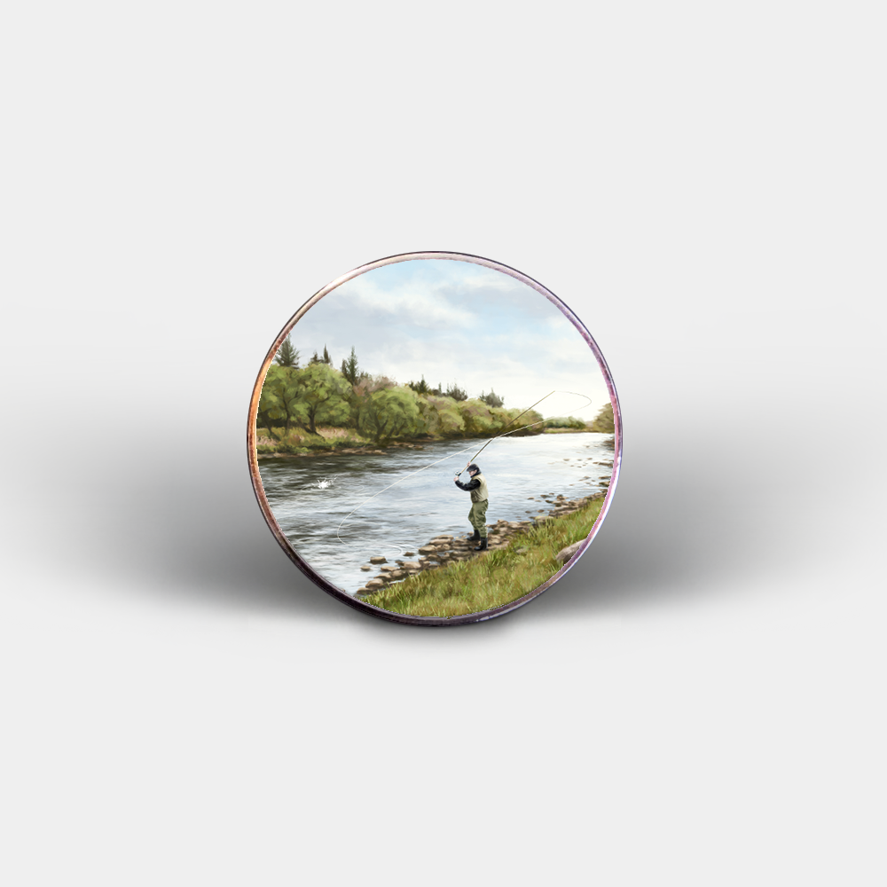 Add a splash of character to your kitchen with our high-quality circular fridge magnets, featuring a Fly Fishing design created by one of our talented local artists.