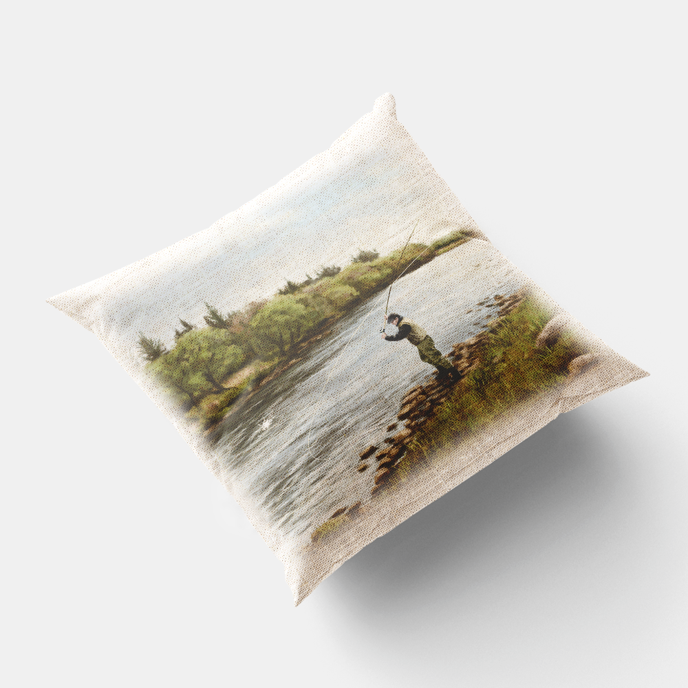 These linen-style cushions showcase an elegant Fly Fishing design created by one of our talented local artists. This exclusive artwork perfectly captures the tranquil art of fly fishing, available only through us.