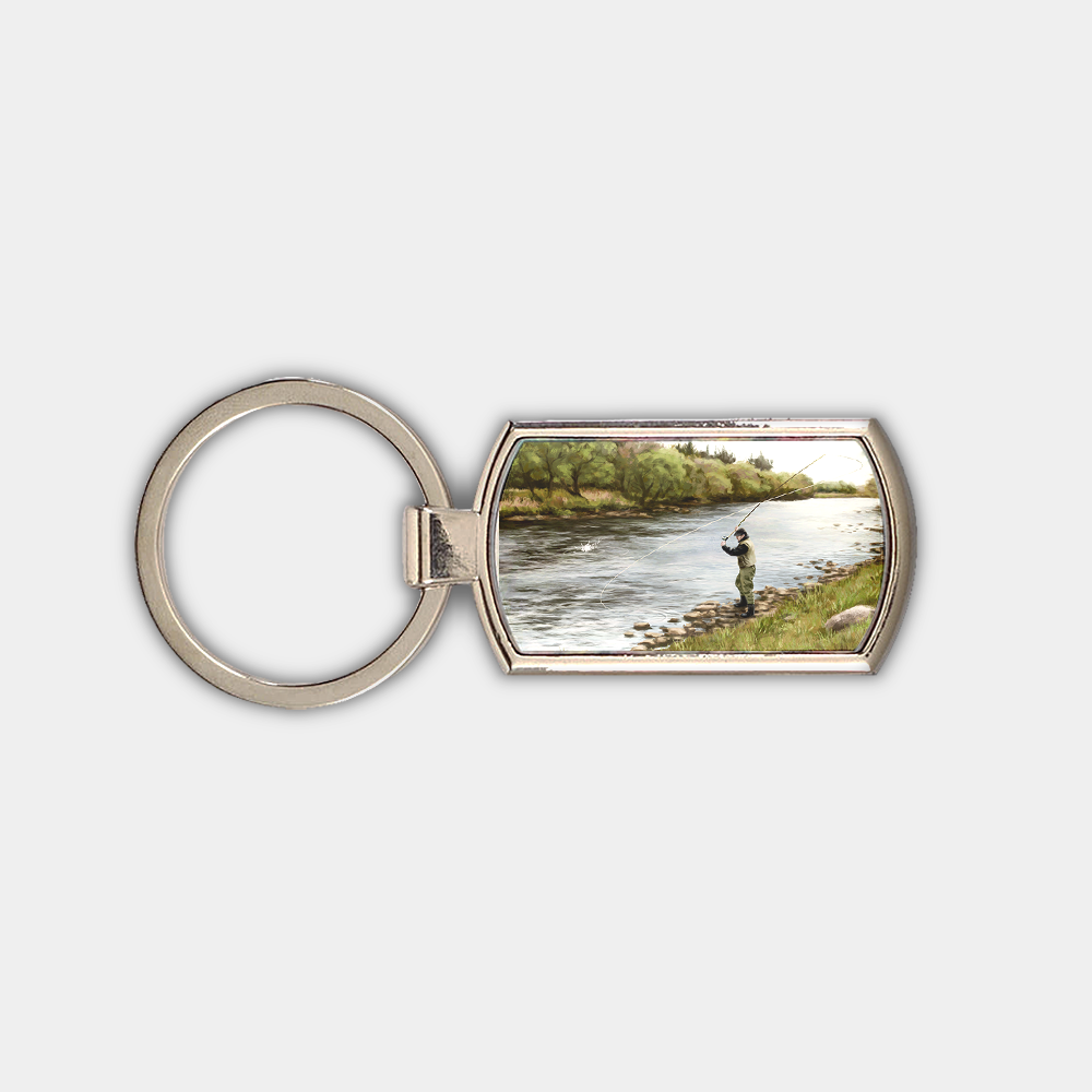 These high-quality, lozenge-shaped metal keyrings feature a beautiful Fly Fishing design created by one of our talented local artists. Part of our exclusive Highland Collection.