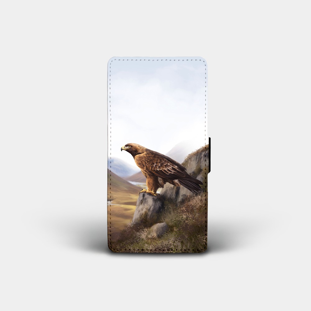 These high quality, PU faux leather phone cases come printed on the front with a majestic golden eagle design created by one of our local artists.