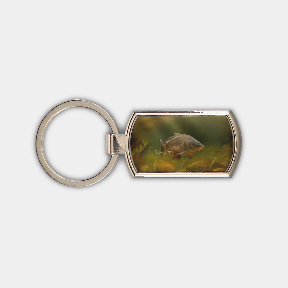 These high-quality, lozenge-shaped metal keyrings feature a beautiful Mirror Carp design created by one of our talented local artists.