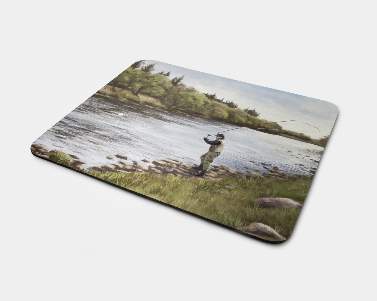 These premium fabric-topped, rubber-based mouse mats showcase a stunning Fly Fishing design, hand-drawn by one of our talented local artists.