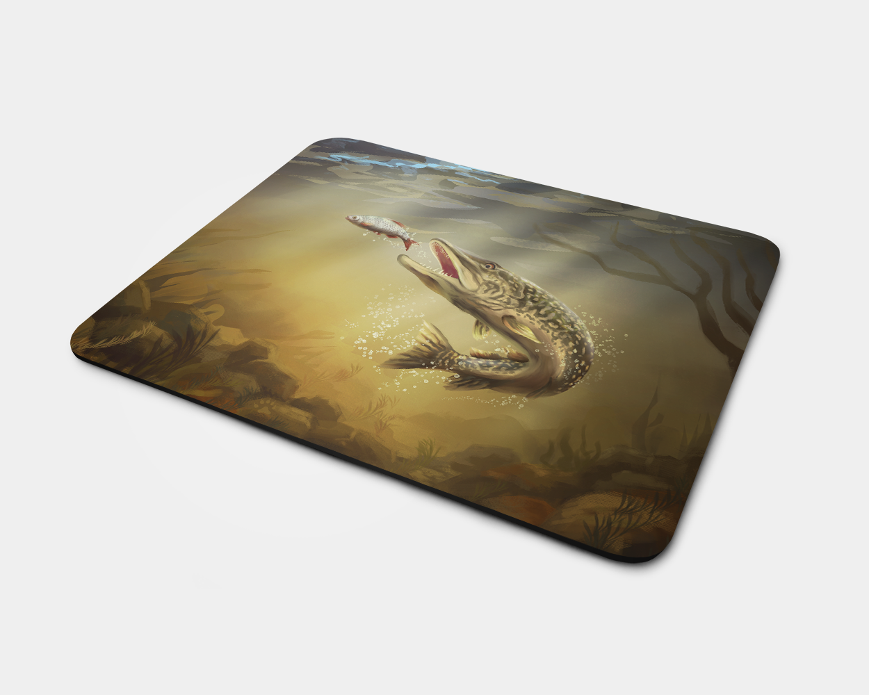 This bold artwork reflects the power and intensity of freshwater pike fishing, making it a great gift or accessory for any angler’s workspace.