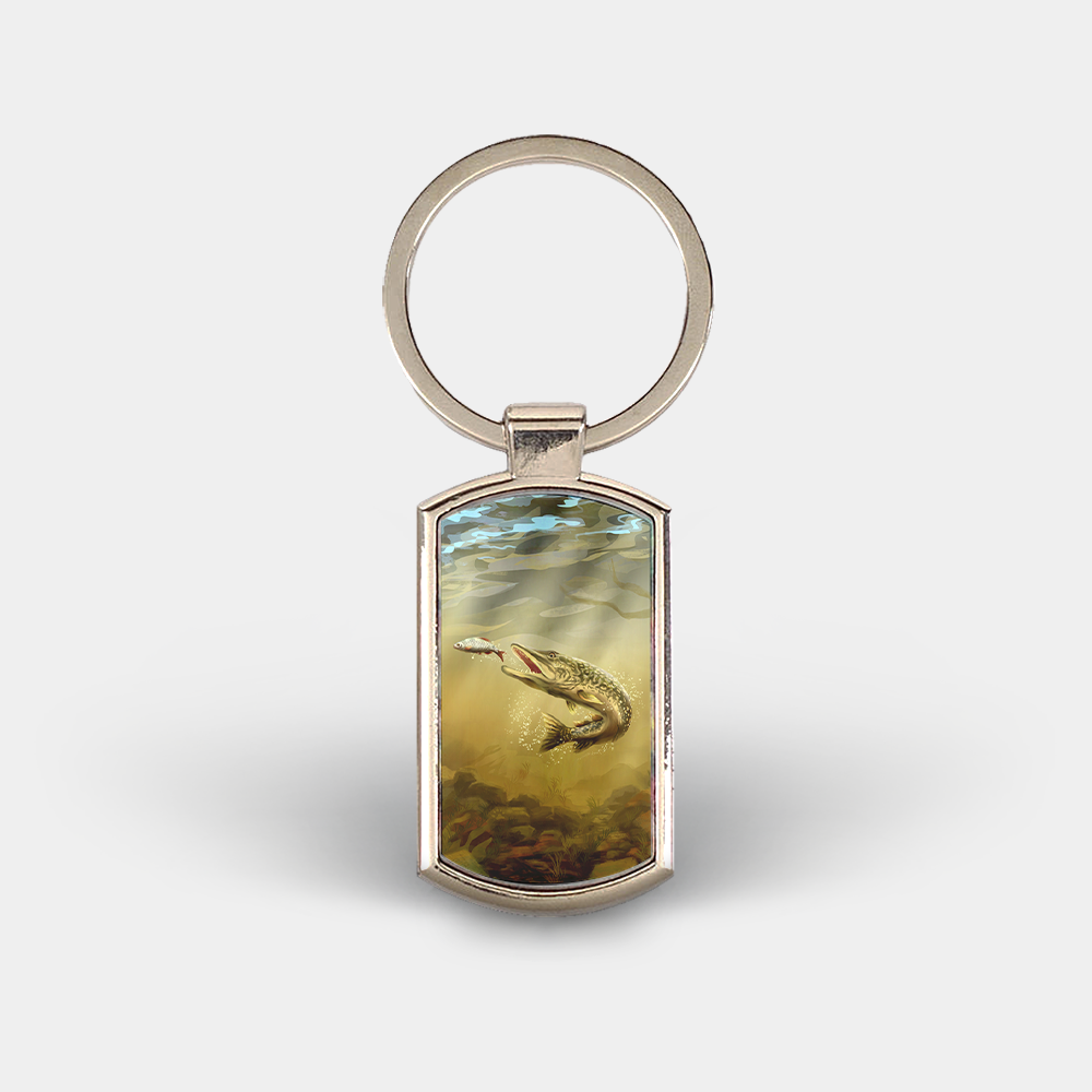 These high-quality, lozenge-shaped metal keyrings feature a beautiful Pike design created by one of our talented local artists.