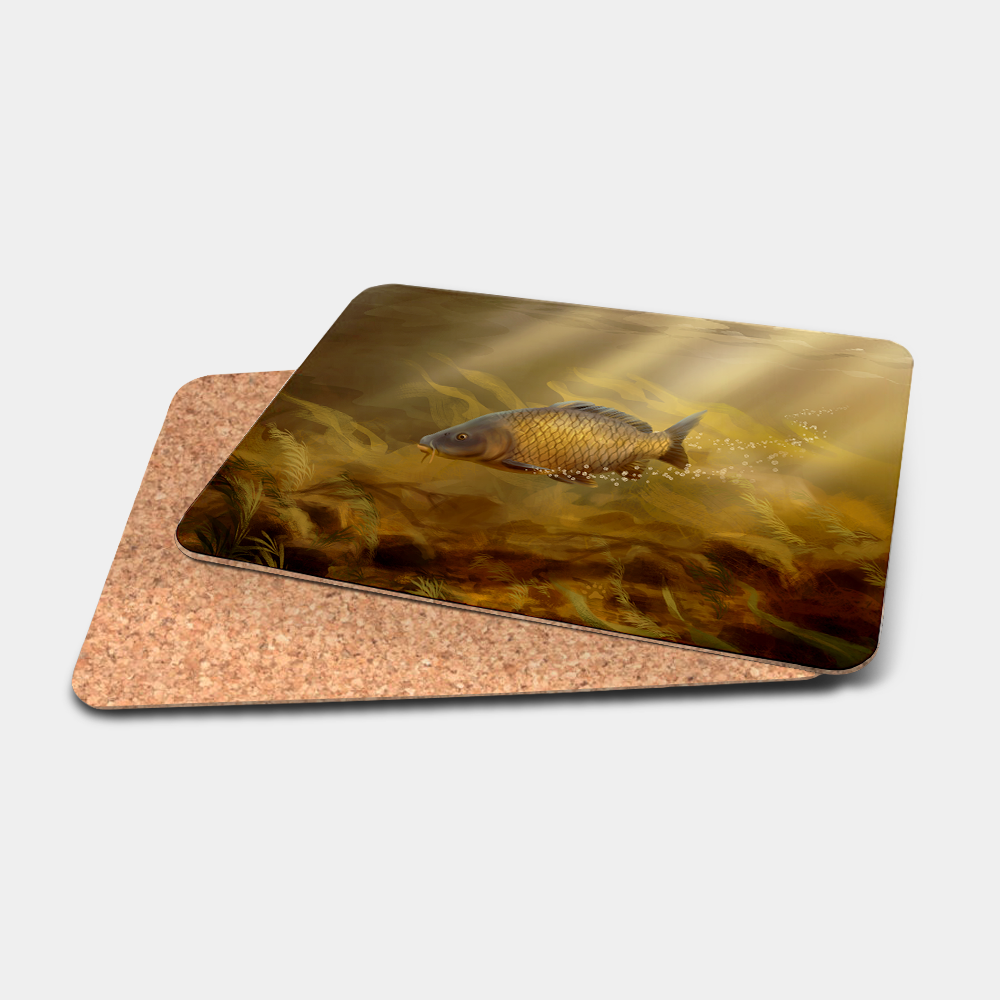 These premium gloss-finished placemats feature a durable cork or board backing and showcase an exclusive Common Carp design, expertly created by one of our talented local artists.