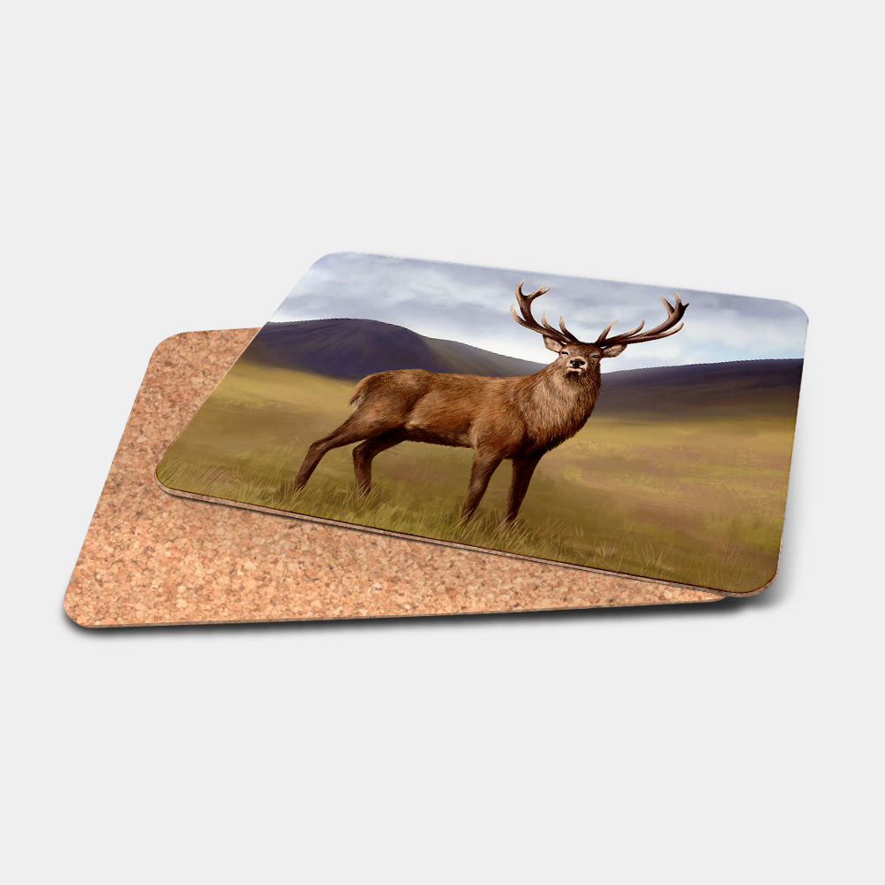 These premium gloss-finished placemats feature a durable cork or board backing and showcase an exclusive Stag design, expertly created by one of our talented local artists.