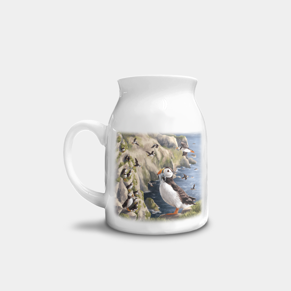 These high-quality ceramic milk jugs come printed with a delightful puffin design created by one of our talented local artists.