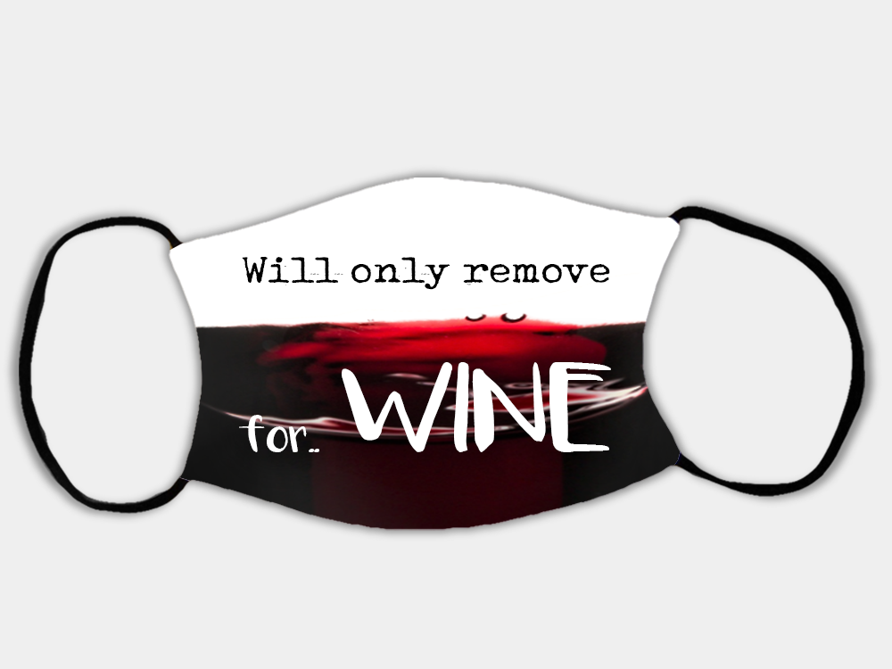Add a personal touch to your health and safety routine with this ‘will remove for wine’ face mask!