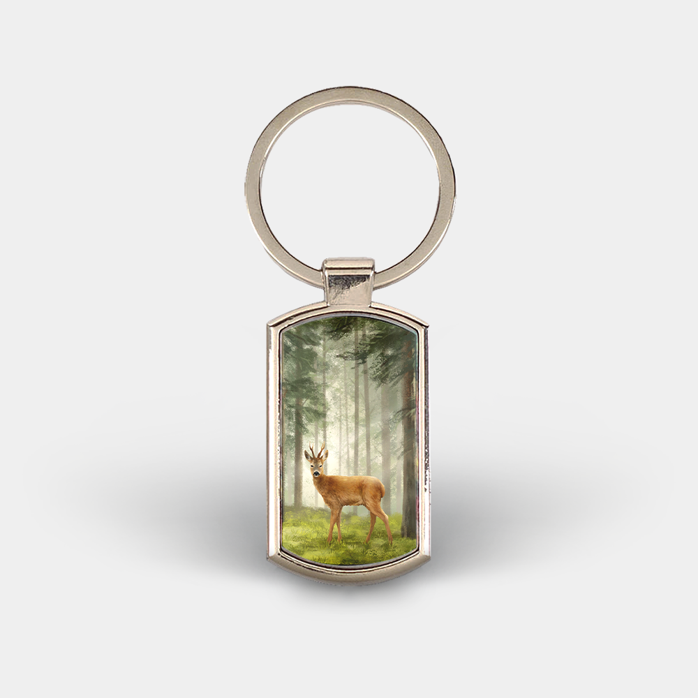 These high-quality, lozenge-shaped metal keyrings feature a beautiful Roe Buck design created by one of our talented local artists. Part of our exclusive Highland Collection.