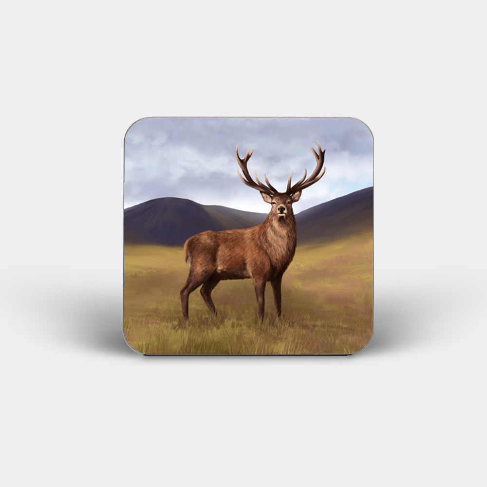 These gloss-finished square coasters feature an impressive Stag design by one of our talented local artists and are available with either cork or hardboard backing. This exclusive illustration captures the proud stance of the majestic stag in the heart of the Highlands.