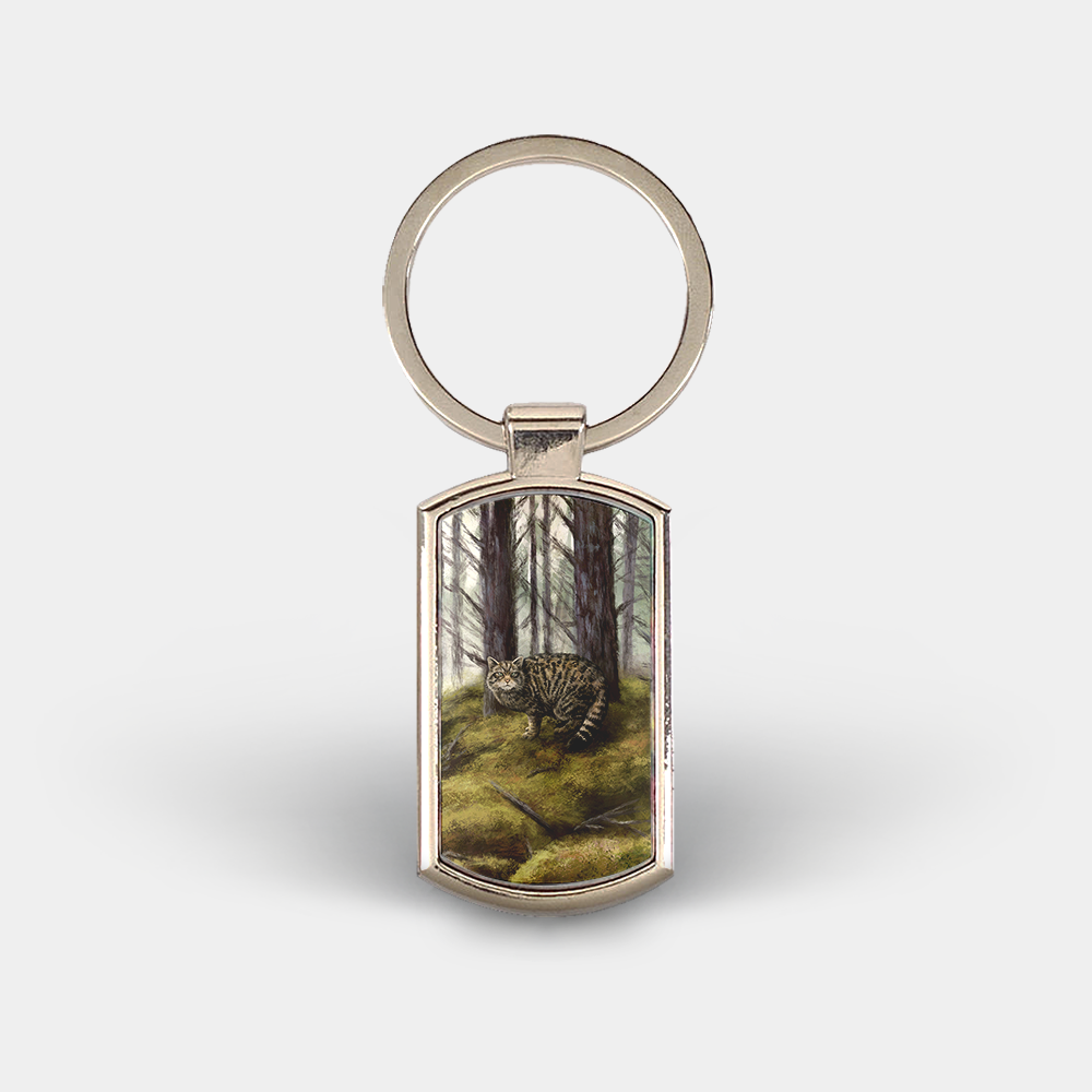These high-quality, lozenge-shaped metal keyrings feature a striking Wildcat design created by one of our talented local artists. Part of our exclusive Highland Collection, this design captures the strength and mystery of this iconic Scottish animal in a classic Highland scene.